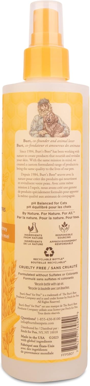 Burt'S Bees for Pets Dander Reducing Cat Spray with Colloidal Oat Flour and Honey - Cat Dander Remover Gives Dry Skin Relief for Cats, Essential Kitten Supplies for Allergy Relief, 10 Fl Oz