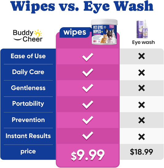 Eye Wipes - Hypoallergenic Tear Stain Remover for Dogs and Cats, Coconut Scent (100 Count)