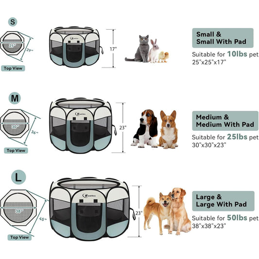 Portable Indoor/Outdoor Pet Playpen for Small Dogs, Cats, and Rabbits with Carrying Case - Grey, Small