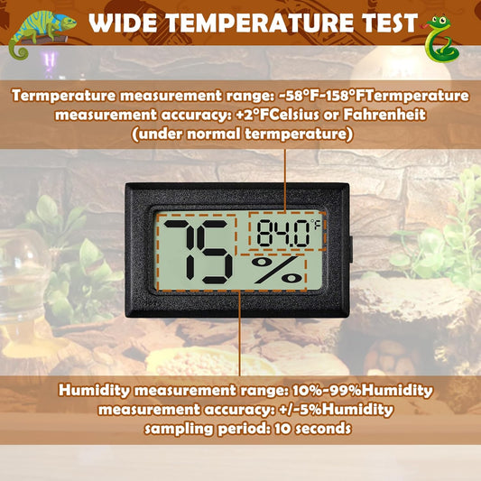 Digital Reptile Thermometer and Humidity Gauge - 2-Pack Adhesive Hygrometer for Terrariums, Ideal for Bearded Dragons, Leopards, Crested Geckos, Snakes, and Lizards