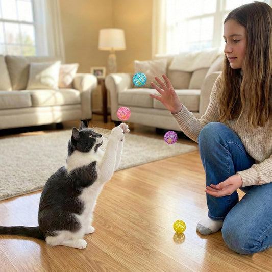 Durable, Fun Balls with Bells Perfect for Swatting and Batting, Colorful Toys to Entertain Indoor Cats and Kittens, - 1.5 Inch, 4 Pcs