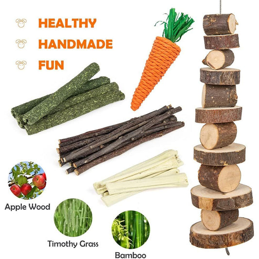 Rabbit Toys Bunny/Guinea Pig Toys Natural Timothy Hay Hamster for Teeth Handmade Chews and Treats Apple Wood Sticks Chinchilla Rat