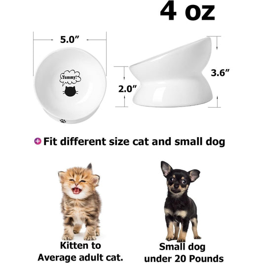 Ceramic Elevated Bowl – For Flat-Faced Cats & Small Dogs, Dishwasher Safe (5'', White)