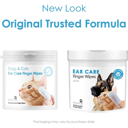 Mooncat Gentle Ear Cleaner Wipes for Cats & Dogs - Soothing Relief for Ear Infections, Mites, and Odors - 40 Easy-to-Use Finger Wipes for Sensitive Ears