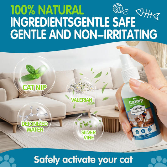 Premium Catnip Spray for Cats – 100% Natural Ingredients, Boosts Energy,Relieves Stress – Renews Toys, Reduces Scratching, Easy-To-Use & Mess-Free 2.71 Fl OZ (Blue-Green, M)